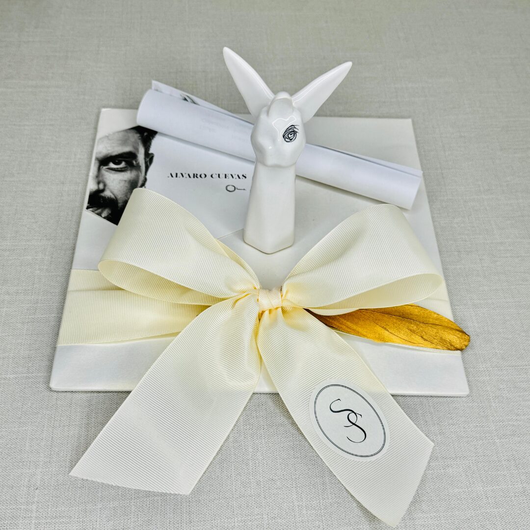 Huella de Libertad – Pieza de cerámica del artista Álvaro Cuevas, parte de la colección Papiroflexia. Disponible en tres tamaños. Incluye certificado de autenticidad y caja por separado.