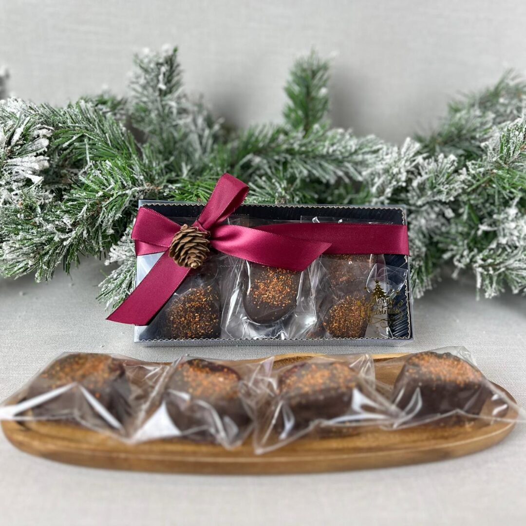 Contiene 6 cuadritos de ate de guayaba con cajeta enchilado cubierto de chocolate